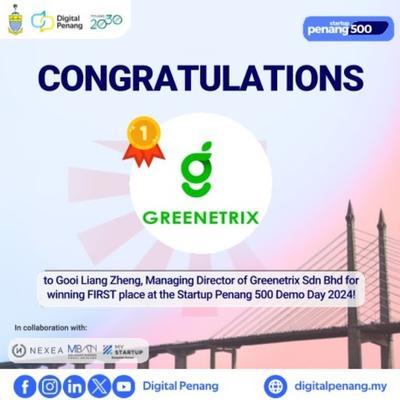 We are thrilled to share that Greenetrix Sdn Bhd has been named the winner of the StartupPenang 500 Programme! 🏆🎉